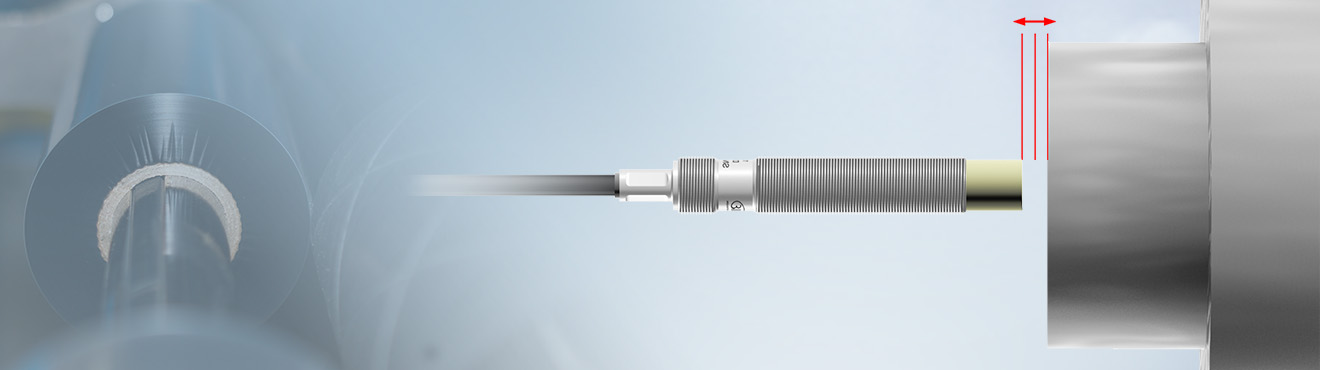 In order to enable the guide or coating rolls to operate at the highest precision, the axial roll runout is continuously measured. Eddy current displacement sensors detect the axial movement of the roll by determining the distance to the roll.